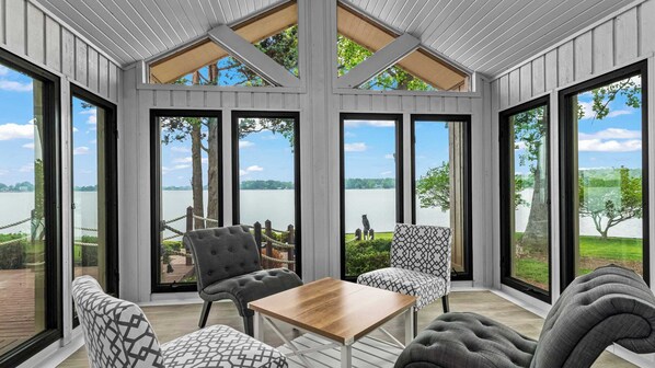 Does Waterfront Stay w/ Canoes, Deck, Game Room & Lake Views Near Mooresville Renwick Cove by Avantstay have any outdoor private spaces?