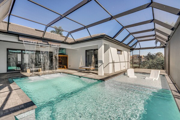 Luxe Outdoor Space! Pet-friendly Cape Coral Home has an outdoor pool and a sauna.